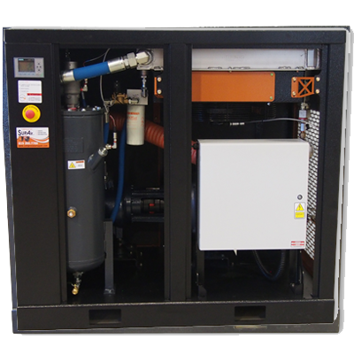 All our compressors are equipped with an aftercooling compressed air system and a condensate drain to remove most of the water in the compressed air avoiding overloading your dryer.